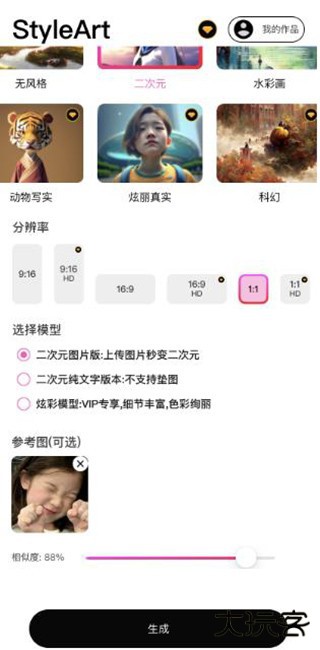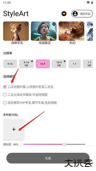 1、如果想要上传照片到StyleArt软件中,在选择模型时应当选择二次元图片版,然后点击参考图;