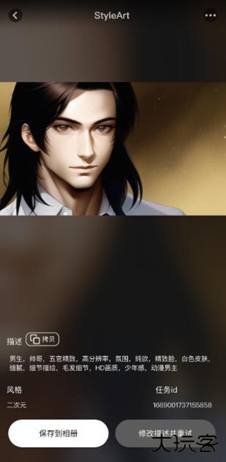 6、过了几秒后你就可以看到你所描述的AI图片,可以将它保存到相册中,或者修改描述进行重试;