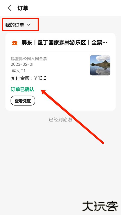 3.在我的订单界面,选择需要退票的订单
