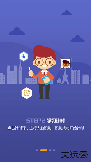 2、点击计时球进行人脸识别,识别成功后开始计时,开始刷学时。