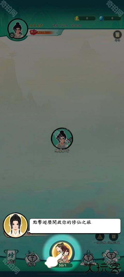 3、进入游戏会有个新手教程,跟随引导操作,点击游历;