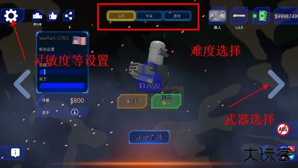 2、主界面装备库中选择合适的作战武器,确认选择后,点击 “开始游戏” 按钮以进入下一流程。