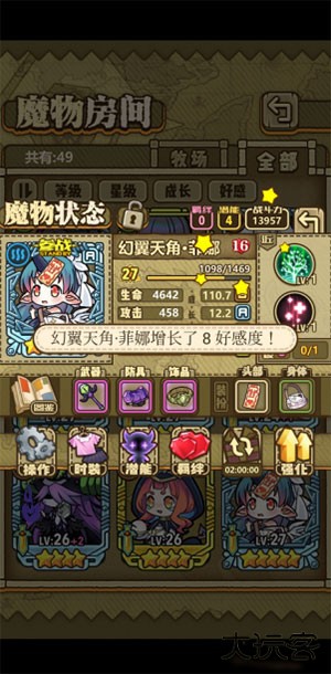 4、魔物娘羁绊: 提升属性!好感 100 后建羁绊,完成任务能强化属性或技能(如小龙人群伤)。