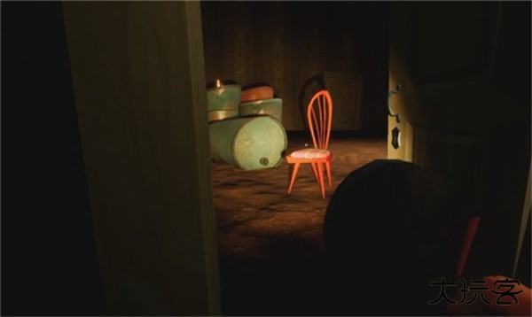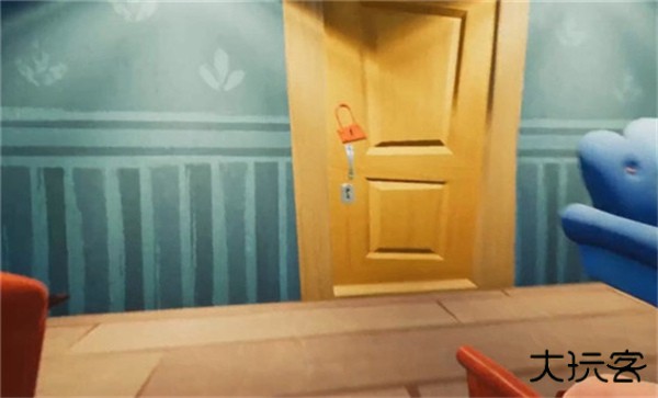 3、使用钥匙开启蓝色沙发旁的黄色门扉,进入地下室。