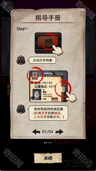 1、点击打开档案,找到邻居的档案位置(右侧页签切换楼层,上方页签切换房间。)