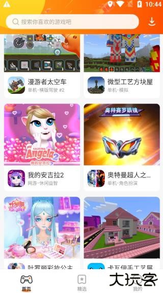 1、在手机上点开樱花迷你秀游戏盒子app,然后进入到主页面,点击搜索。