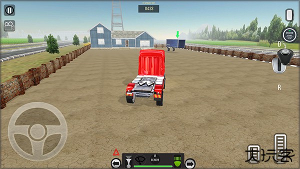 3、驾驶控制布局如下:左侧虚拟摇杆控制车辆转向;右侧区域提供油门加速键与刹车键。如需倒车操作,请先将右侧档位拨杆向下滑动至倒车档位,随后按下油门加速键即可。