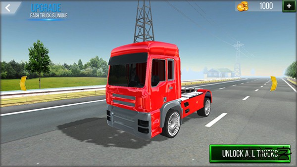 2、游戏界面中可通过左右操作浏览可用卡车车型。解锁并使用新卡车需消耗玩家在游戏过程中累积的金币。