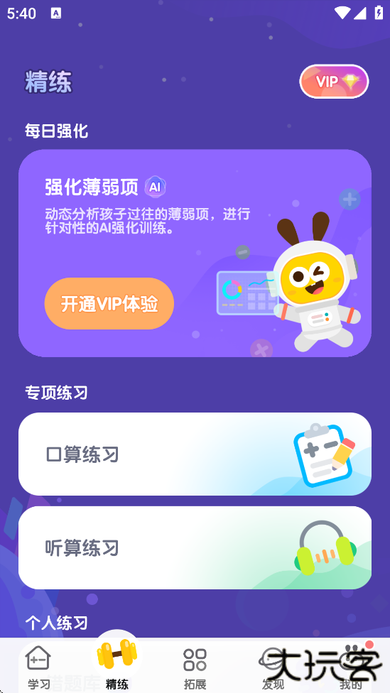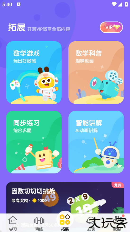 数感星球是一款面向4-10岁儿童的数学启蒙APP,由火光摇曳教育科技(深圳)有限公司研发,基于新加坡CPA教学法将数学知识转化为游戏化训练体系。其核心功能包含5000+教材同步练习题、10余款互动游戏(如角度比舞、动物数独),覆盖数感运算、图形空间、逻辑推理及生活实践四大模块,通过AI智能精练系统实现个性化训练与错题追踪。该应用支持多终端使用,曾获美国妈妈选择奖等国际认证,2024年升级AR互动与学习打卡系统,成为兼顾趣味性与系统性的数学思维训练工具。