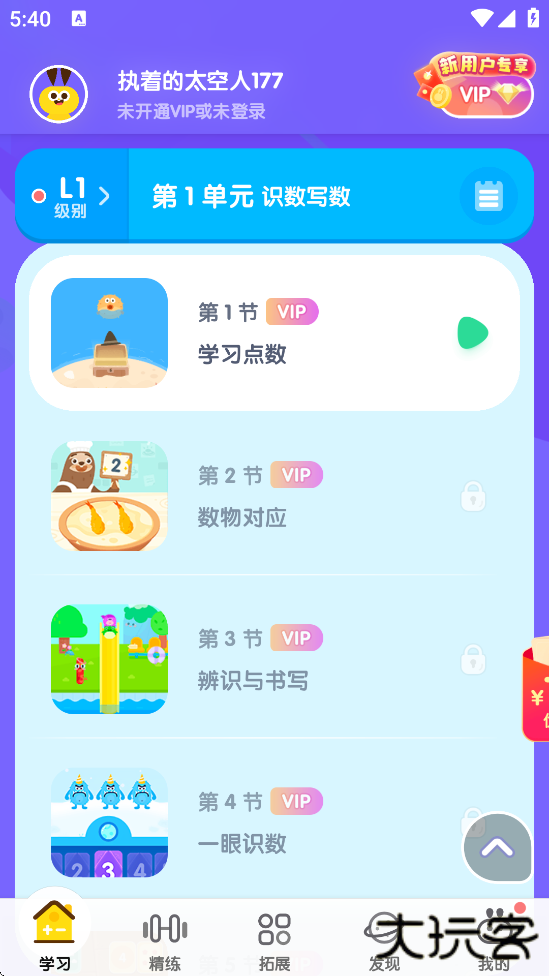 数感星球软件下载安装安卓版是一款教育学习软件,通过虚拟教具的交互化设计,软件分为四大模块为孩子提供引导式学习,同时软件内置AI智能辅助,更好为孩子们提供个性化训练,更多惊喜等你来发现,这么好用的软件,你还等什么?感兴趣的小伙伴快快下载前来体验吧!