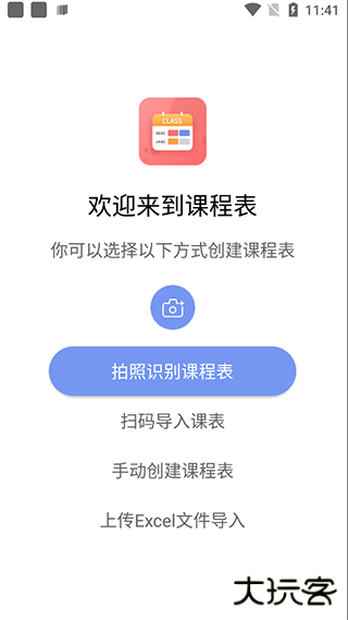 1、进入软件后,用户可以选择以下创建课程表:扫码识别课程表、扫码导入课表、手动创建课程表、上传Excel文件导入