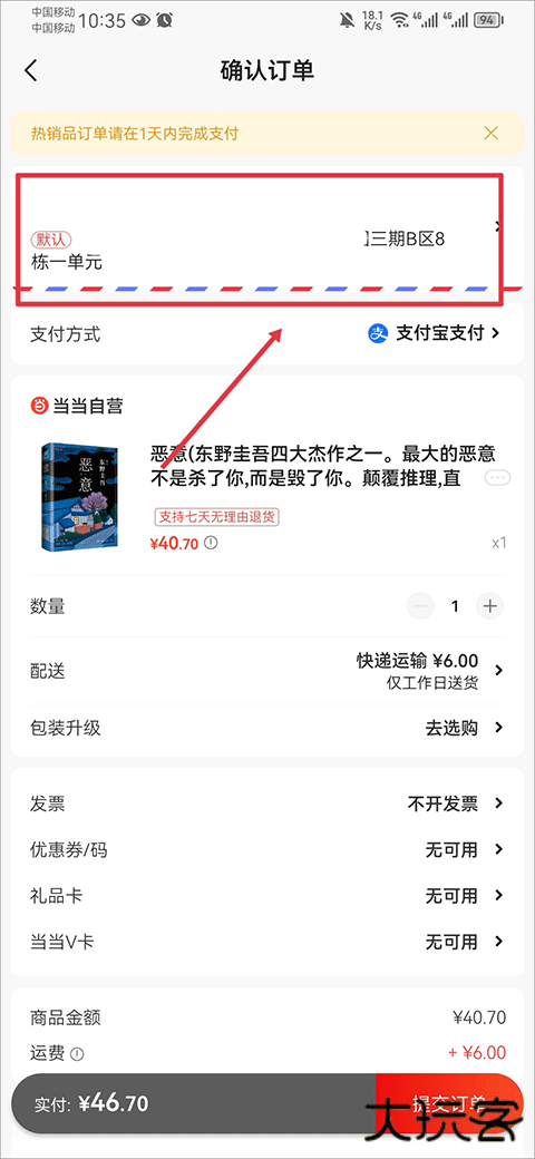 5.当然也可以在确认订单的时候,点击地址后进行修改收货地址