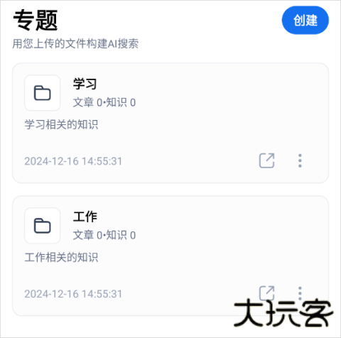 3、知识库搭建:上传PDF、DOCX、PPTX等格式文件,打造自己的资料库,个性化扩展AI搜索功能。