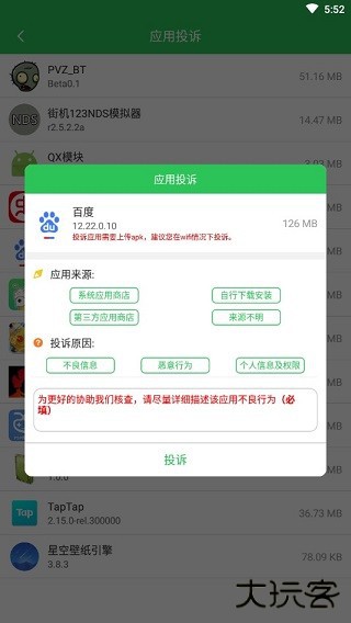 3、点击应用投诉,点击要投诉的应用,选择投诉原因并提供描述,提交即可