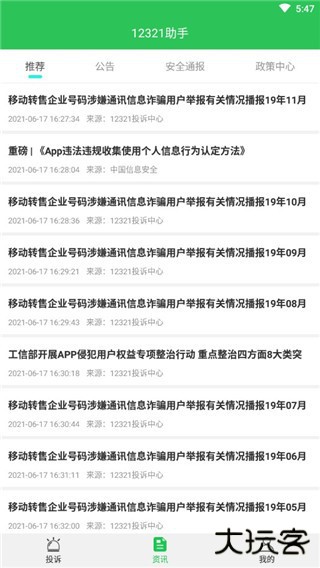 4、点击资讯,可以查看各类官方资讯,公告和政策