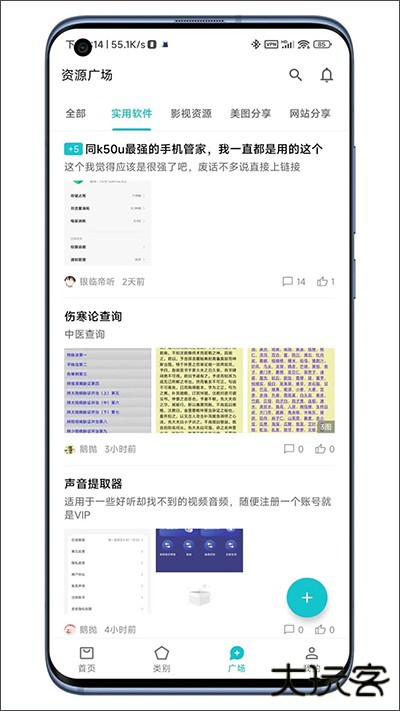 广场不仅是应用的交流平台,更是一个资源共享天地。实用工具、影视资源、高清美图分享等应有尽有,等你来探索发现更多精彩!