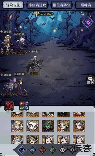 暗黑骑士(前排肉盾)、魔镜王后(核心输出)、邪魔悟空(核心输出)、搭配强力辅助疯外婆、女仆苏菲,简直无敌于天下。