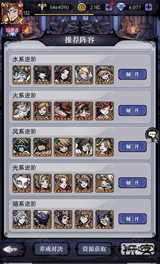 1、冒险者们在城堡里面召唤伙伴,可以在界面右上角的推荐栏里面查看推荐阵容,根据自身目前拥有的伙伴或想走的阵容路线进行选择。