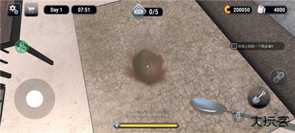 4、同时使用道具开始挖掘,挖掘下面可能有物品。