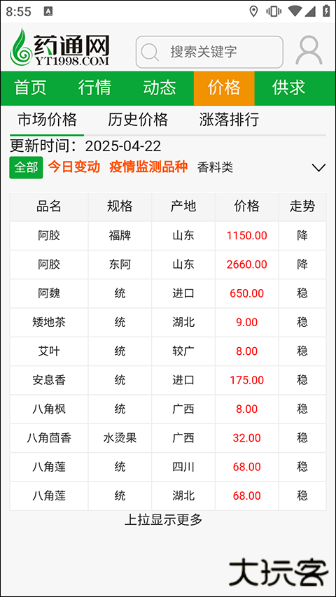 药通网天天行情手机版APP下载是专业化的中药信息平台软件,软件为用户提供大量的中药方面的信息,各种功能在这里一应俱全,同时还有各种你想要了解的信息资讯,打造一个方便快捷的药材的交流平台,再也不用到各大药房跑。药通网天天行情手机版2025最新下载还能帮助用户获取最新的药材航企动态等信息,同时用户还能通过软件购买其他用户发布的商品,也可以发布求购信息出售自己的商品,在扩大自己的销售渠道的同时,还能获得更多利益,十分方便。