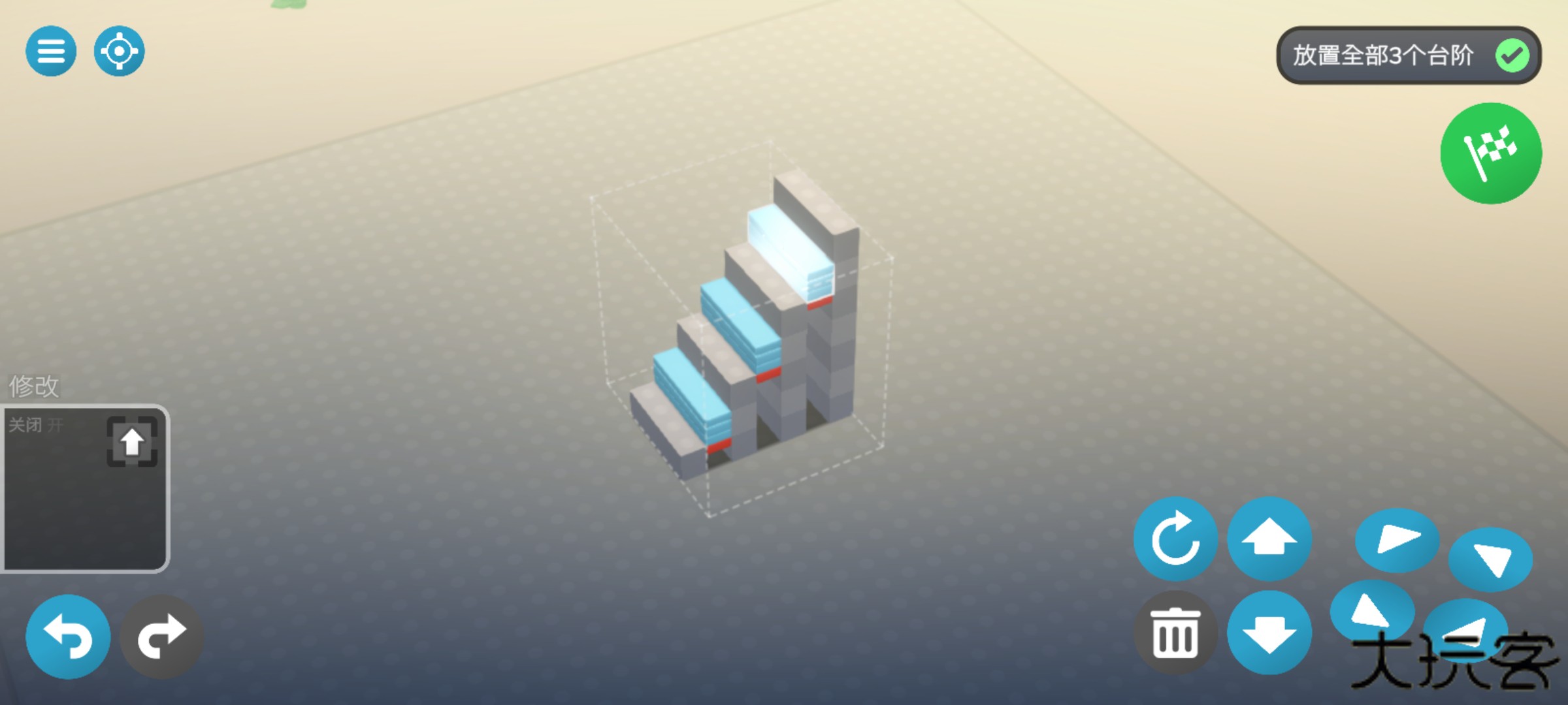 5.如图所示,当你搭建成功后,右边的旗帜会变成绿色,点击ta即可完成任务