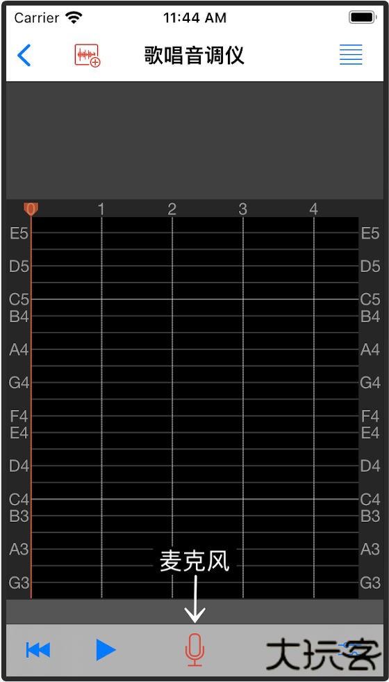 2、跟随App提供的音阶或练习曲,尽量准确唱出目标音调。