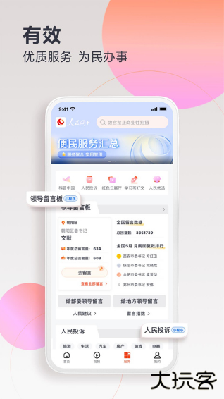 3、集成“领导留言板”“人民维权”等互动版块,支持用户直接向地方政府留言或在线维权。