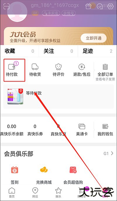 1、打开进入国美来购app软件,在“我的”界面内点击待付款;