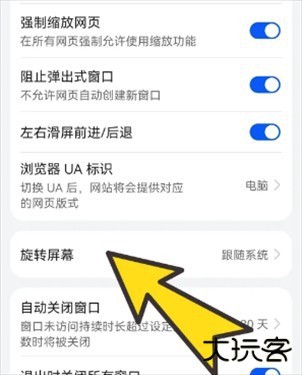 2、进入浏览设置界面后,找到并点击旋转屏幕。