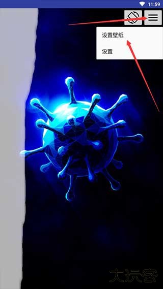 3、返回首页点击右上方【设置壁纸】,进入预览界面,点击设置壁纸,即可使用液态壁纸app。