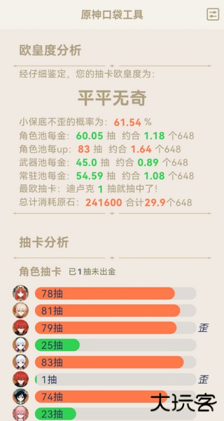 2、然后就可以看到自己的最新最详细的抽卡分析数据了