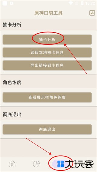 1、先在app中依次点击菜单界面、抽卡分析;
