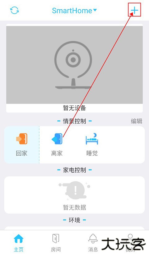 用户在本站下载并打开软件后,需要先登录注册自己的账号,然后到首页点击右上角的“+”,进行设备的添加