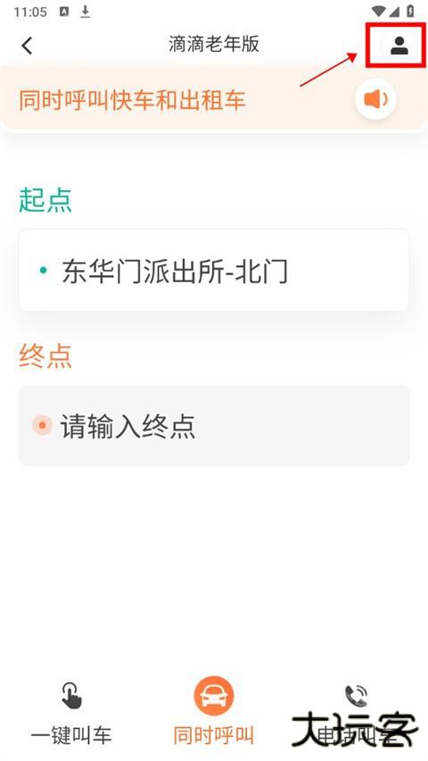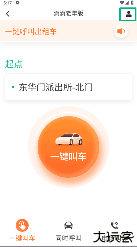 1、打开滴滴老年版app,点击右上角绿色方框图标