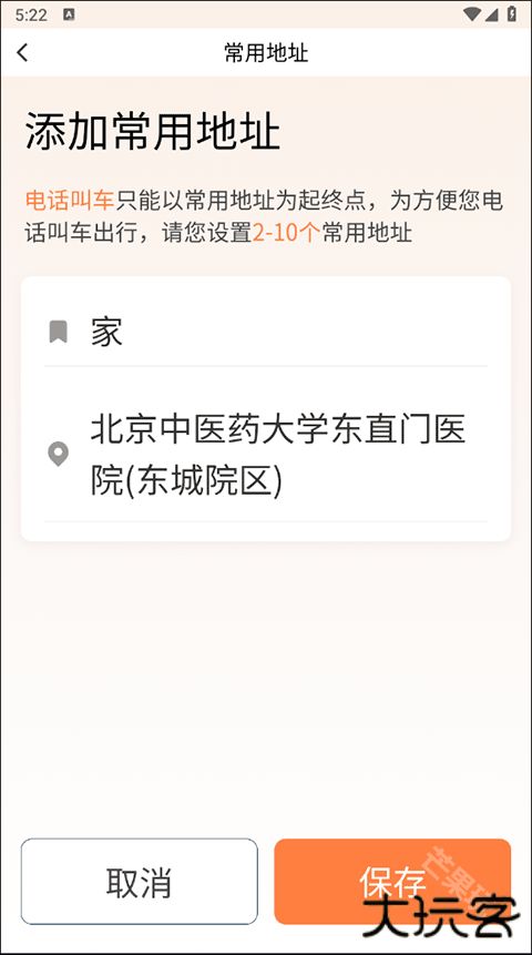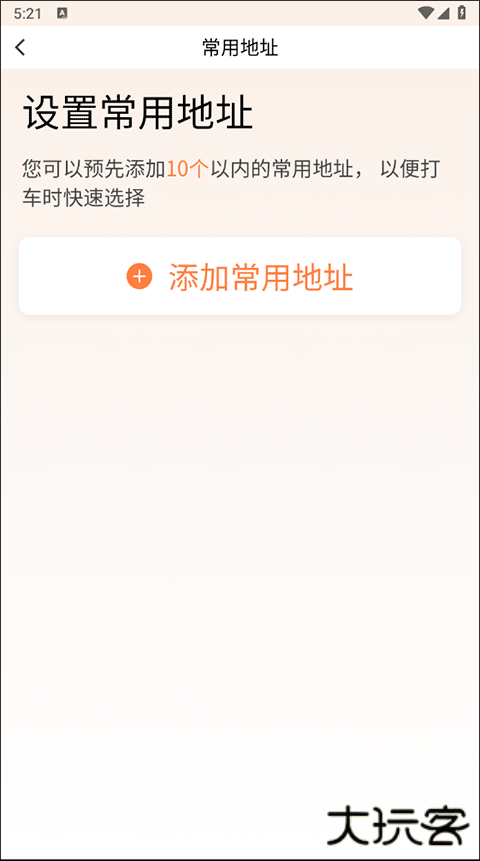 1、认证用户可在APP内直接点击预设的10个常用地址快速叫车,无需手动输入目的地