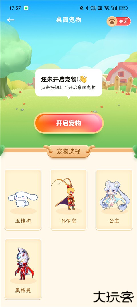 1、在首页点击桌面宠物,共有玉桂狗、孙悟空、公主和奥特曼等可以选择。