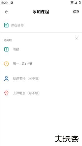 2、输入课程名称、上课时间和地点,完成课程添加。