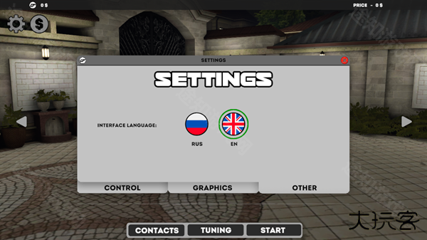 1、下载并安装高加索停车场,进入游戏选择语言,游戏共提供了俄语和英语两种语言供玩家选择,暂时不支持中文