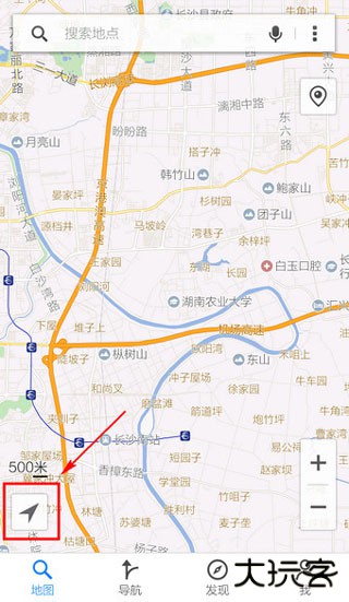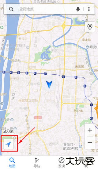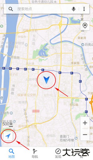 3、定位成功,“箭头”变为蓝色,图中心出现你的当前坐标。