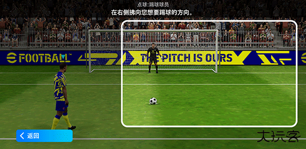 在右侧拂向您想要踢球的方向
