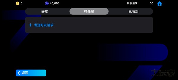 2、在好友系统界面内,选择 "待处理" 功能标签页。在该页面中,点击 "发送好友请求" 操作选项进入检索流程。