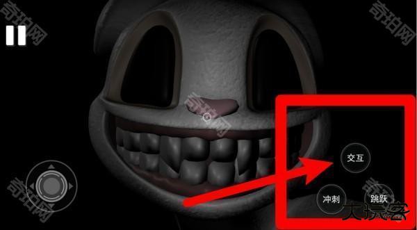 3.移动控制:左下角虚拟摇杆支持全方位操作,玩家可自由探索黑暗环境,结合互动和跳跃按钮完成更多动作,增加探索和生存可能。
