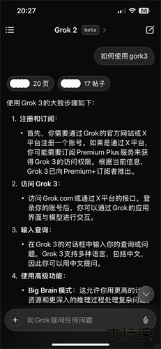 3、独特的“Big Brain”模式和“DeepSearch”功能进一步提升了复杂问题处理和深度信息分析能力。