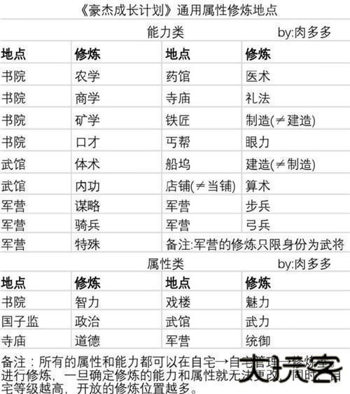 四、各个属性的训练地点