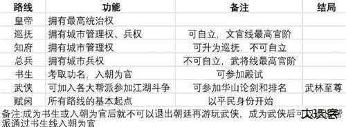 一、武侠路线攻略