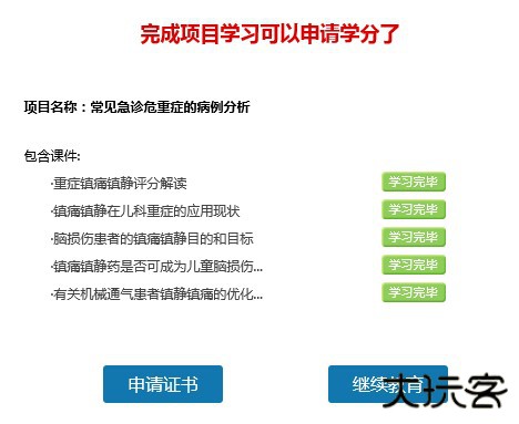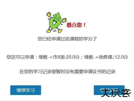 1、当你完成学习一项课程的全部内容后出现以下界面