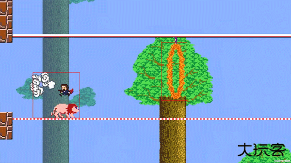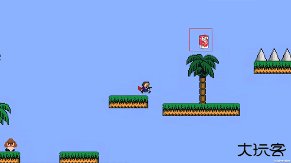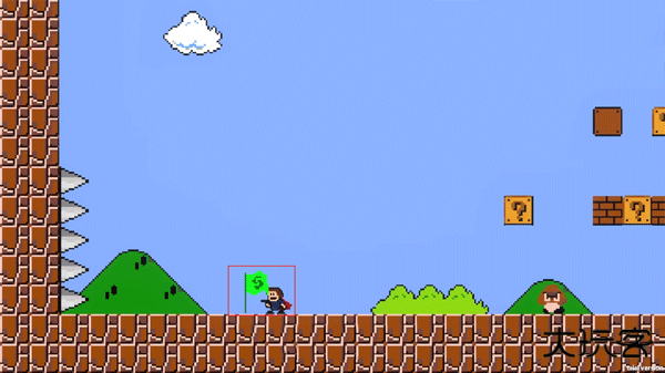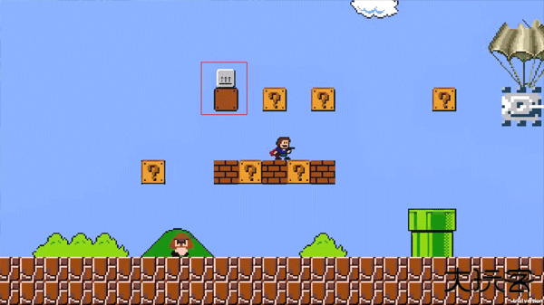 4、这个场景跟马里奥玩法类似,通过头顶上方带有问号的小箱子获得白色方块中的各个技能。