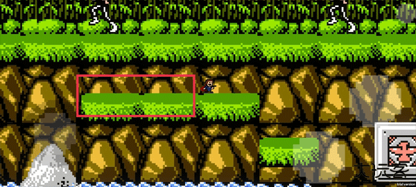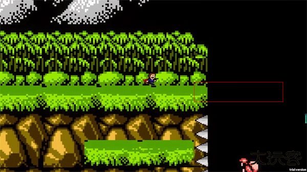 3、从底下跳跃到上面后,从红色框框选中的地方跳下去进入第二个场景。