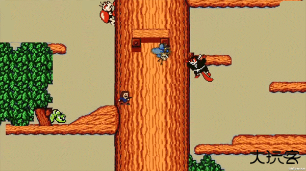 10、下面就是一个树,里面会有机关,各种小虫子和动物,如果不小心掉落到树底下就会被毛毛虫吃掉。