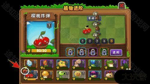 2、然后选择要进阶的植物,如樱桃炸弹;